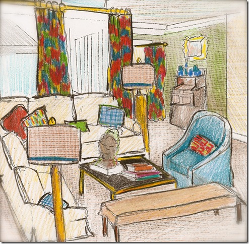 Here is a quick crayon-sketch of what the space could look like, using the brighter colour palette.